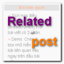 Bài viết liên quan ở sau bài viết quá quyên thuộc với chúng ta rồi. Bài viết này sẽ hướng dẫn các bạn tạo 1 box nhỏ chứa các bài viết liên quan tới bài đang đọc nằm ngày bên cạnh tiêu đề bài viết. Thủ thuật này hiển thị tốt với các bài viết có 1 nhãn , nếu 1 bài viết có nhiều nhãn thì các bài hiển thị trong box này cũng sẽ tăng theo. Ví dụ ta thiết lập cho 1 nhãn hiển thị trong box là 4 bài, thì với 2 nhãn ta sẽ có 8 bài.